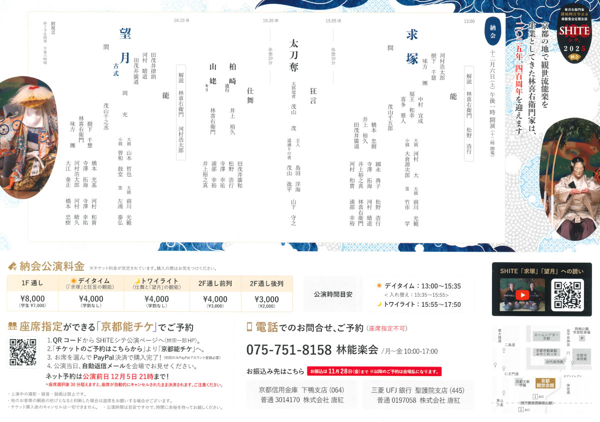 ■ご予約 :林喜右衛門(宗一郎)HP内 『京都能チケ』
