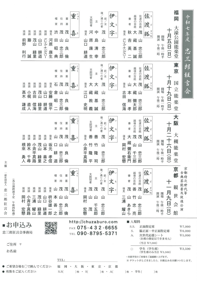 ■お申込み:忠三郎狂言会事務局