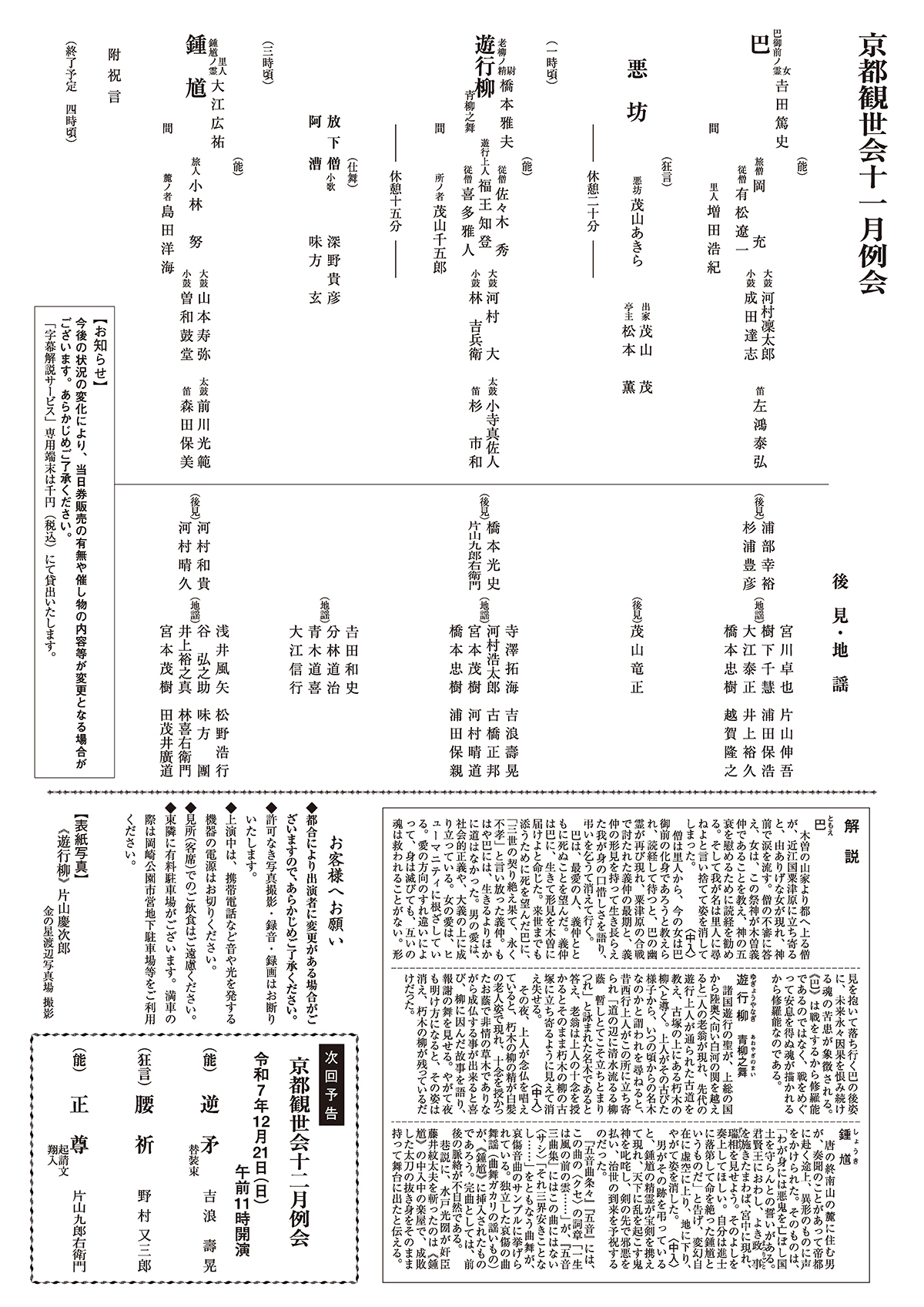 『五音曲条々』『五音』には、この曲の〈クセ〉の詞章「一生は風の前の雲……」が、『五音三曲集』にはこの曲にはない〈サシ〉「それ三界安きことなし……」をともなう曲舞が、哀傷音曲のサンプルに挙げられている。独立した哀傷の曲舞謡(曲舞ガカリの謡いもの)が、≪鍾馗≫に挿入されたものであろう。完曲としては、前後の脈絡が不自然である。
