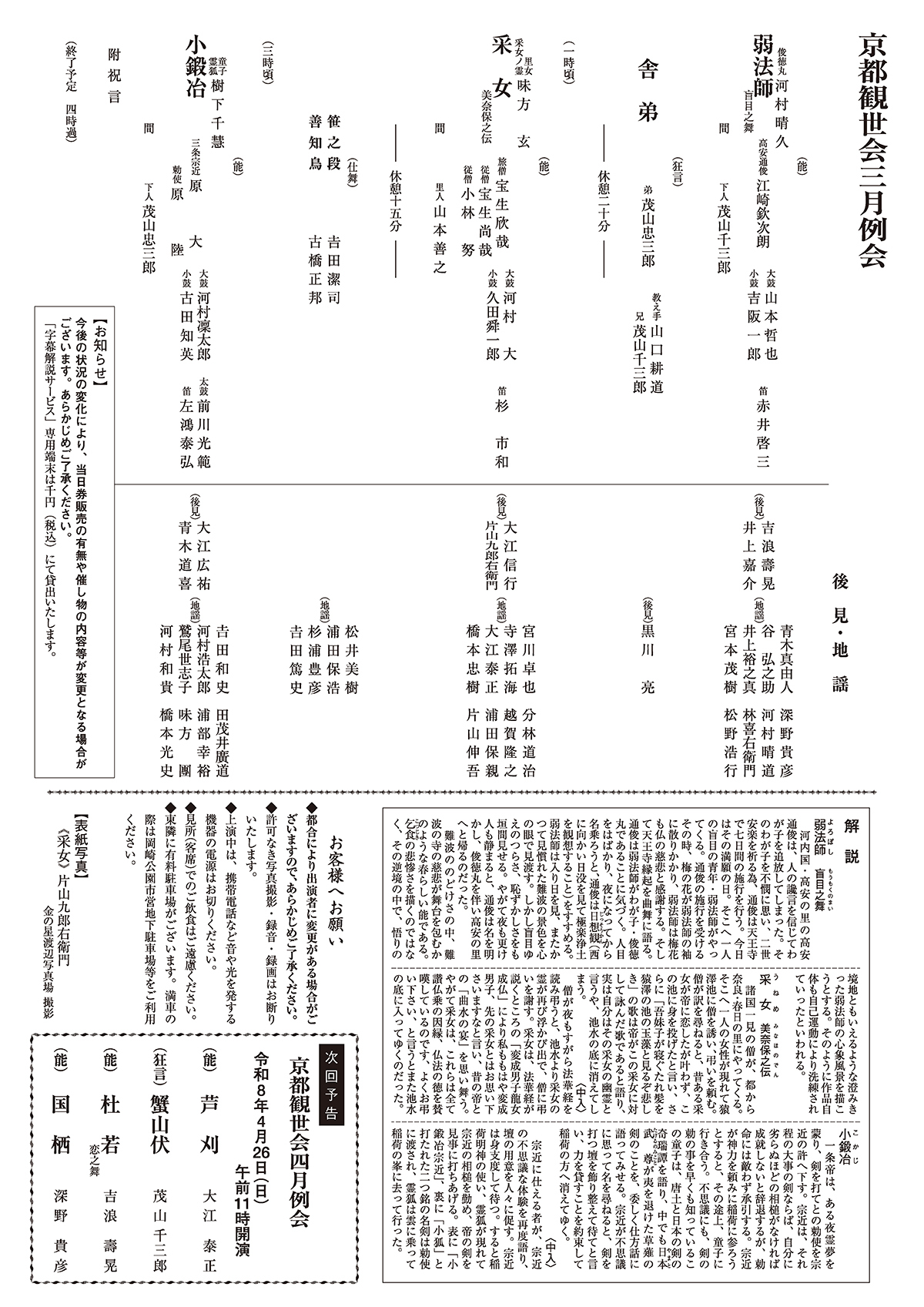 美奈保之伝(能) 小鍛冶 樹下 千慧
