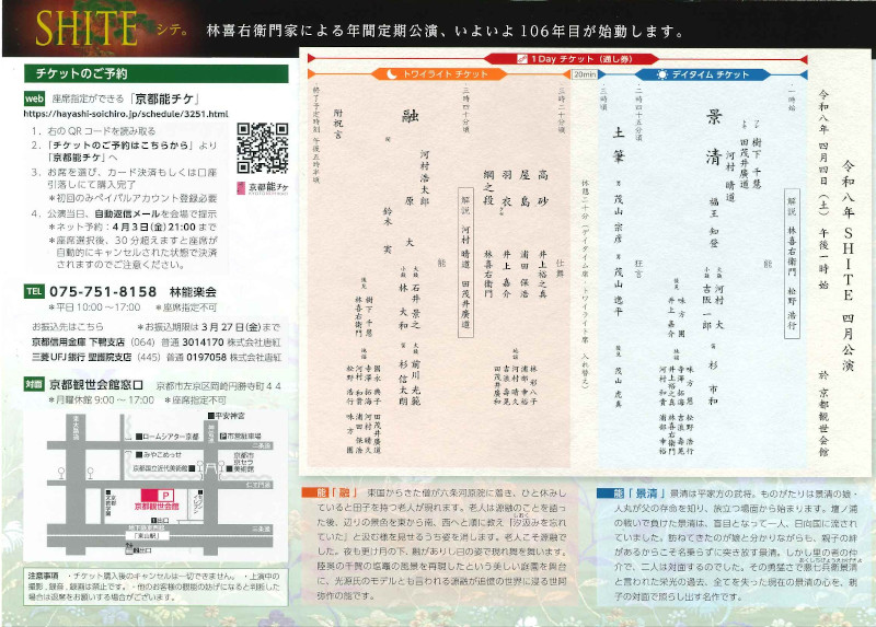 ■ご予約 :林喜右衛門(宗一郎)HP内 『京都能チケ』