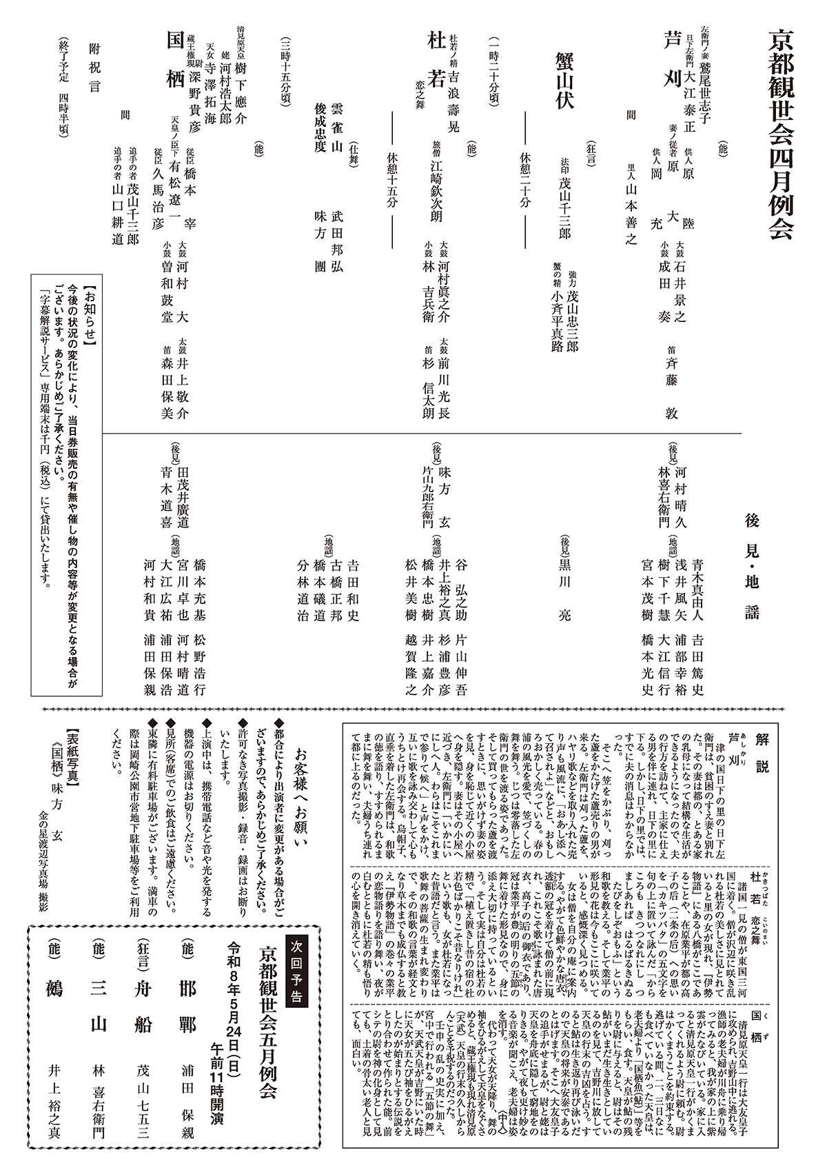 代わって天女が天降り舞の袖をひるがえして天皇をなぐさめると、蔵王権現も現れ清見原天皇の行末の久しからんことを予祝するのだった。