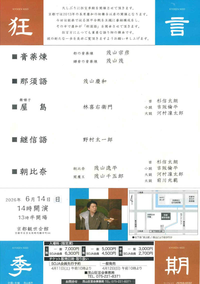 ・茂山狂言会事務局 TEL:075-221-8371